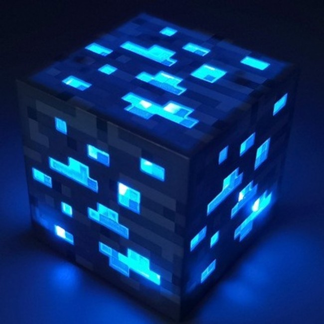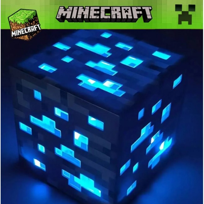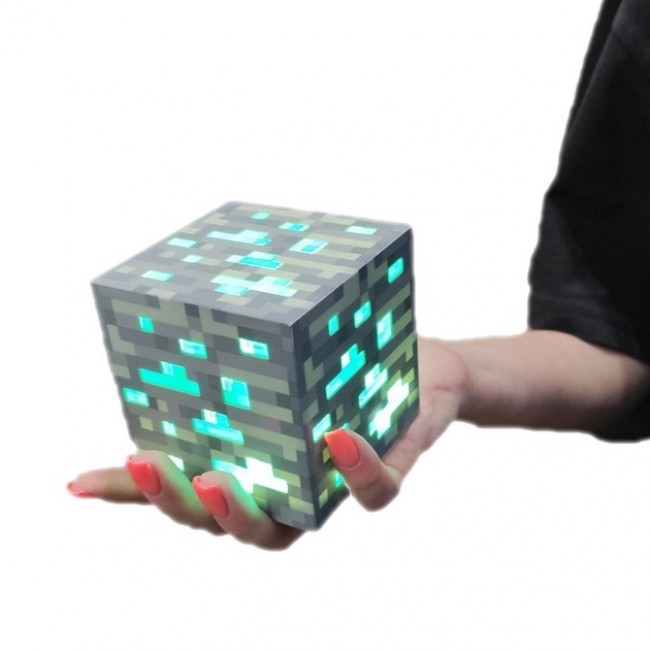 Цей акумуляторний світлодіодний світильник виглядає як алмаз із Майнкрафт Minecraft, мегапопулярної комп'ютерної гри, яка дуже захопила велику аудиторію дітей.