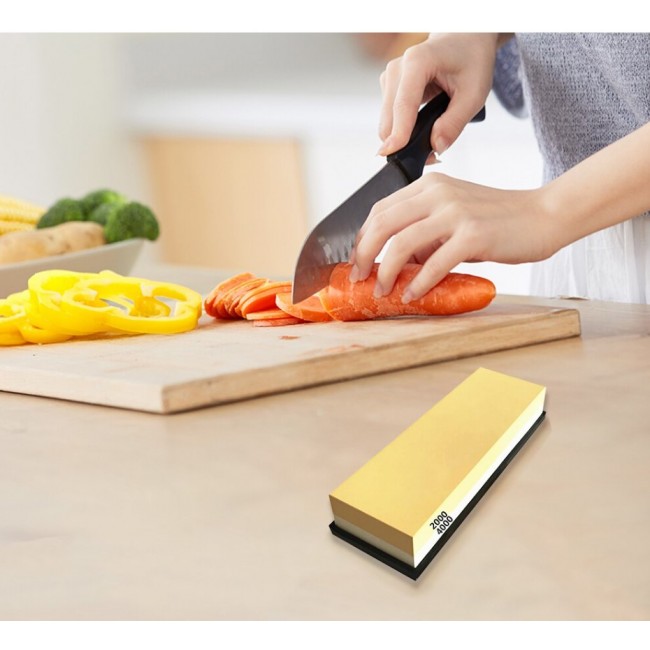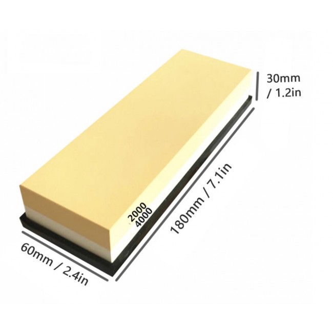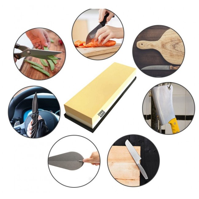 Сторона із зернистістю 2000 грит підходить для формування ріжучої кромки ножів із твердих сталей (наприклад, традиційних японських кухонних ножів) або фінішного доведення клинків звичайної твердості. Сторона, що має зернистість 4000 грит, призначена для полірування ріжучої кромки. Укомплектований підкладкою з гуми рамкового типу, яка запобігає його ковзанню під час роботи.