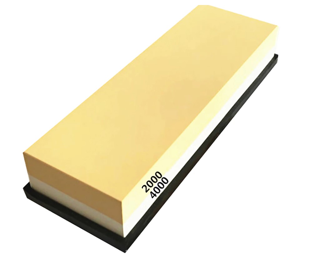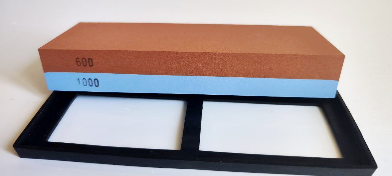 Двосторонній точильний водний камінь Водний точильний камінь 1000/400 grit з гумовою рамкою-підставкою, що запобігає його ковзанню в процесі заточування. Призначений для заточування ножів різного та типу та призначення, а також інших різальних інст..