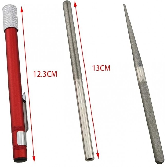 Опис of Точилка для ножів кишенькова алмазна комплект ручка для ножів, ножниць та гачків 2 стержні Червона
