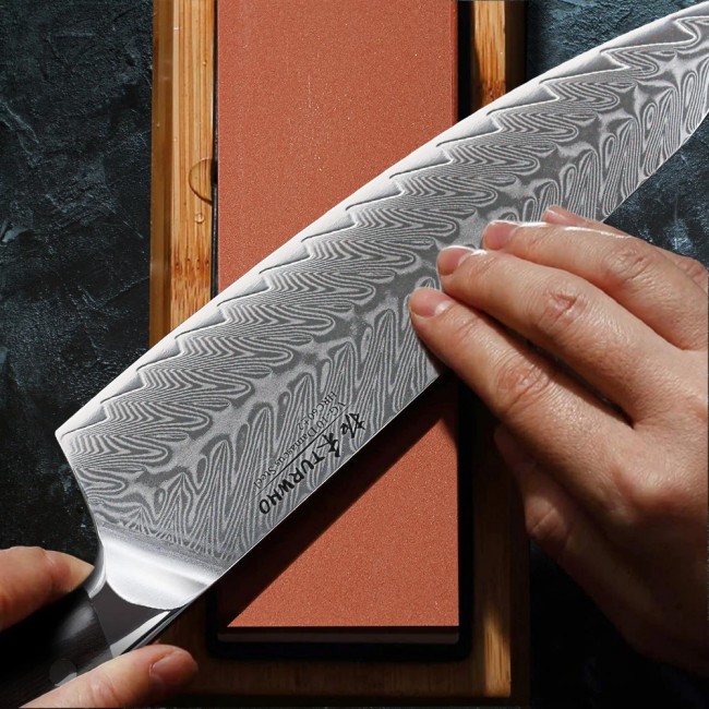1. Зануріть брусок у воду на 5 хвилин, потім покладіть його на стійку платформу. Тримайте ножа під кутом 10 – 30 °, точіть край на поверхні бруска взад і вперед з невеликим зусиллям.