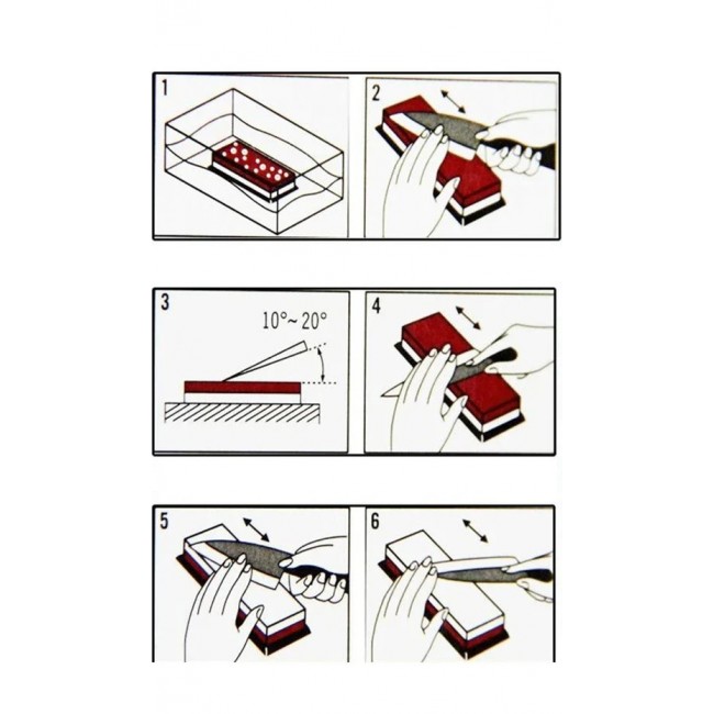Щоб досягти найкращого результату після використання точильного каменю, дотримуйтесь мінімальних інструкцій: Перед використанням камінь потрібно занурити у воду на 15 хвилин, після чого покласти на стійку поверхню.