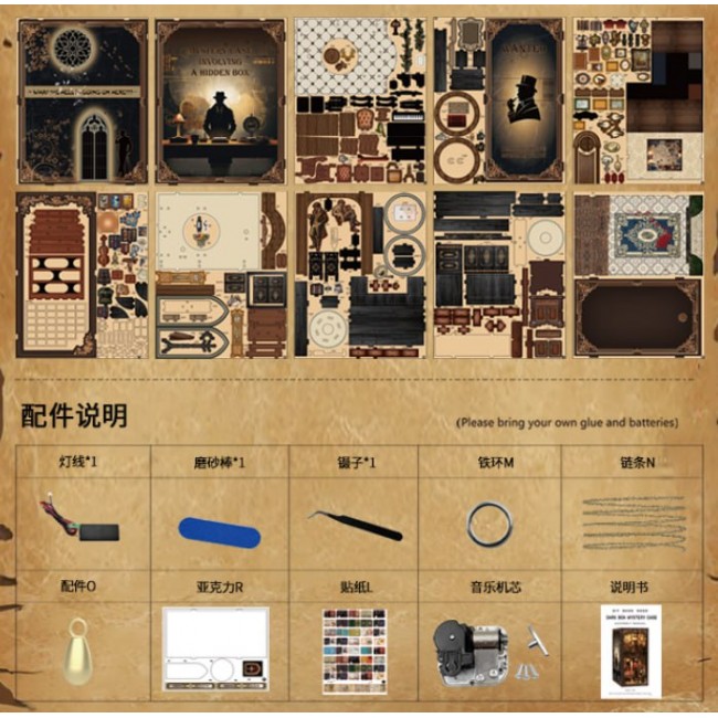 Опис of Бук Нук Детективна агенція Таємниця темного ящику Book Nook Dark Box Mystery Case DIY BV02-017 з музичним механізмом
