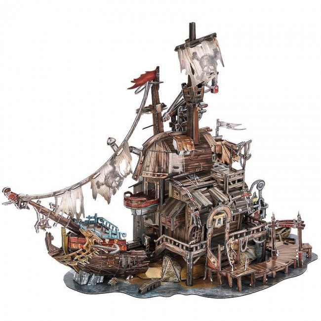 3D-пазл «Тортуга Бей» — це масштабна та надзвичайно деталізована модель легендарного піратського порту. Вежі, щогли, прапори, будівлі, палуби та безліч декоративних елементів створюють справжню атмосферу піратського світу, повного пригод і таємниць.