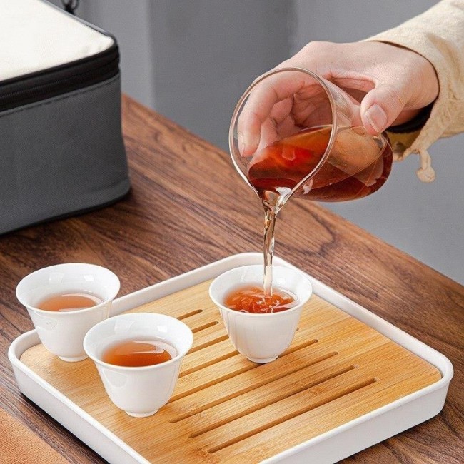 Опис of Дорожній набір для чайної церемонії на 4 персони 12 предметів Білий