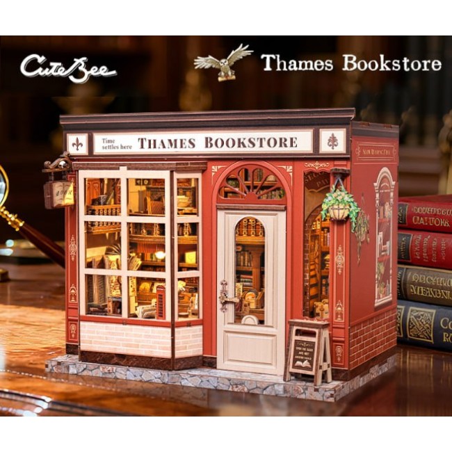 Опис of Румбокс Книжковий магазин Roombox Thames Bookstore DIY House Cute Bee Інтер'єрний конструктор CWGB-405